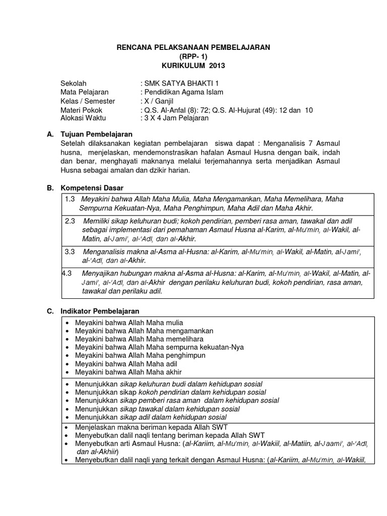 Rpp Bab I Asmaul Husna