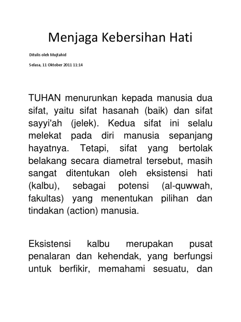 Pentingnya Menjaga Kesucian Kebersihan Hati Al