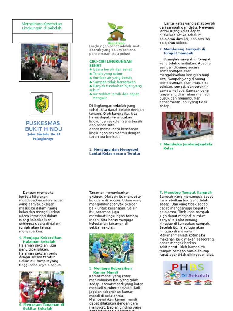 Memelihara Kesehatan Lingkungan Di Sekolah Puskesmas Bukit