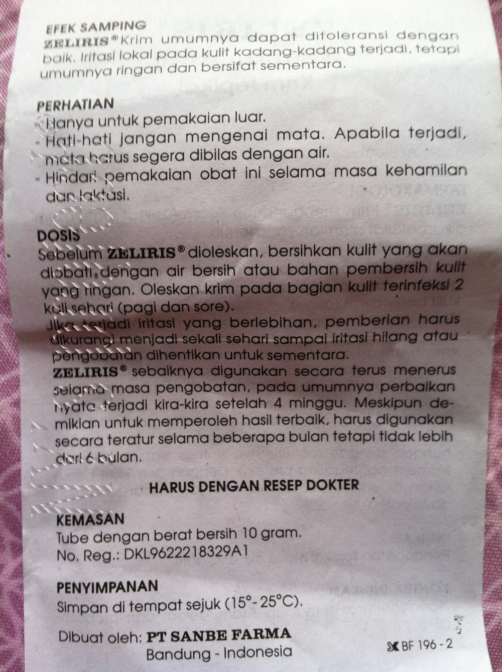 Zeliris 20 Krim 10 G Informasi Obat Dosis Efek Samping
