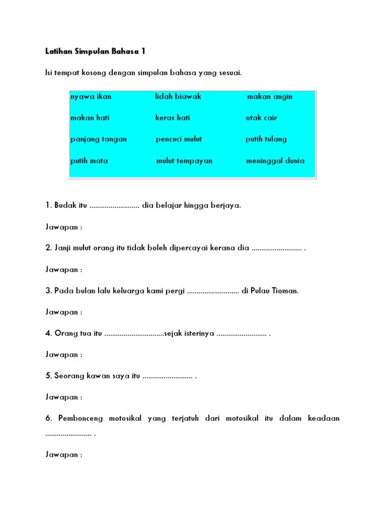 Latihan Simpulan Bahasa 1