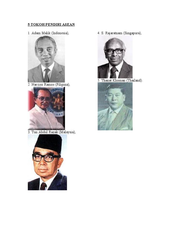 Sebutkan 5 Tokoh Pendiri Asean Dan Negara Asalnya Nada Pambar Di