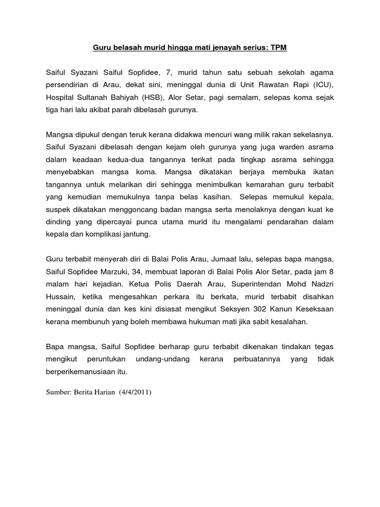 Guru Belasah Murid Hingga Mati Jenayah Serius Tpm