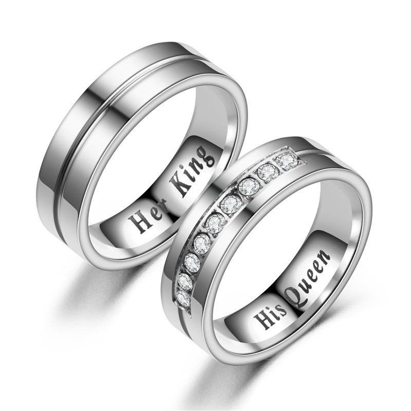Set Cincin Kawin Tunangan Titanium Kristal Berlian His Queen Her