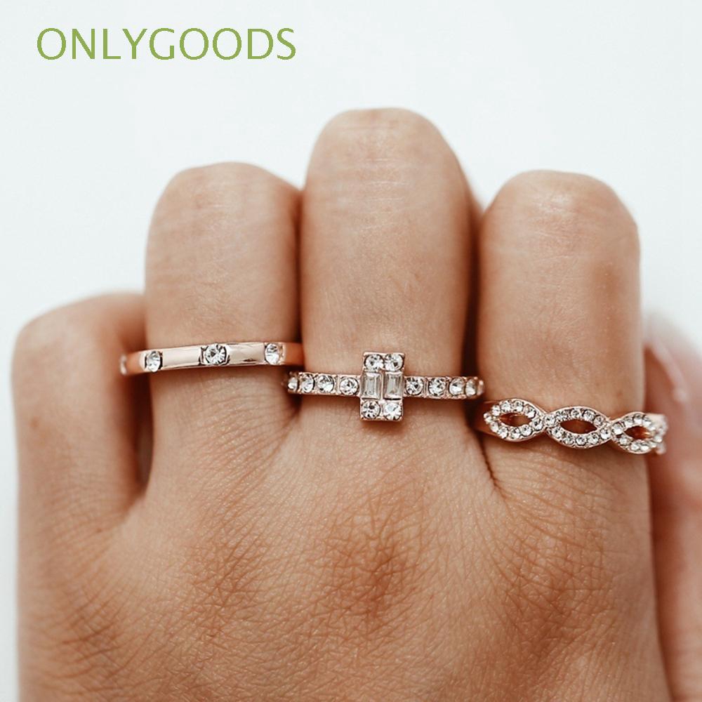 3pcs Set Cincin Kawin Tunangan Desain Geometri Kristal Gaya