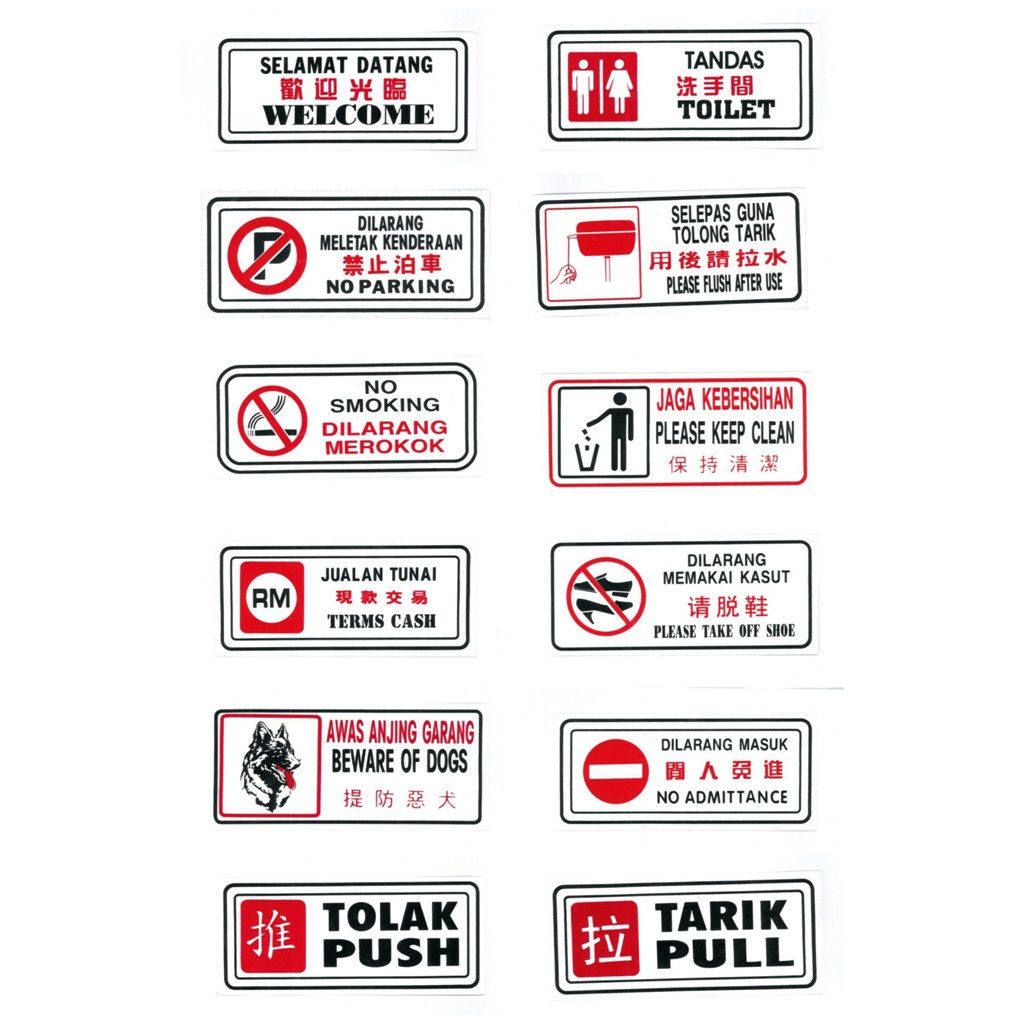 Msia Stock Toilet Stickers Push Pull No Smoking Cash Sign Door