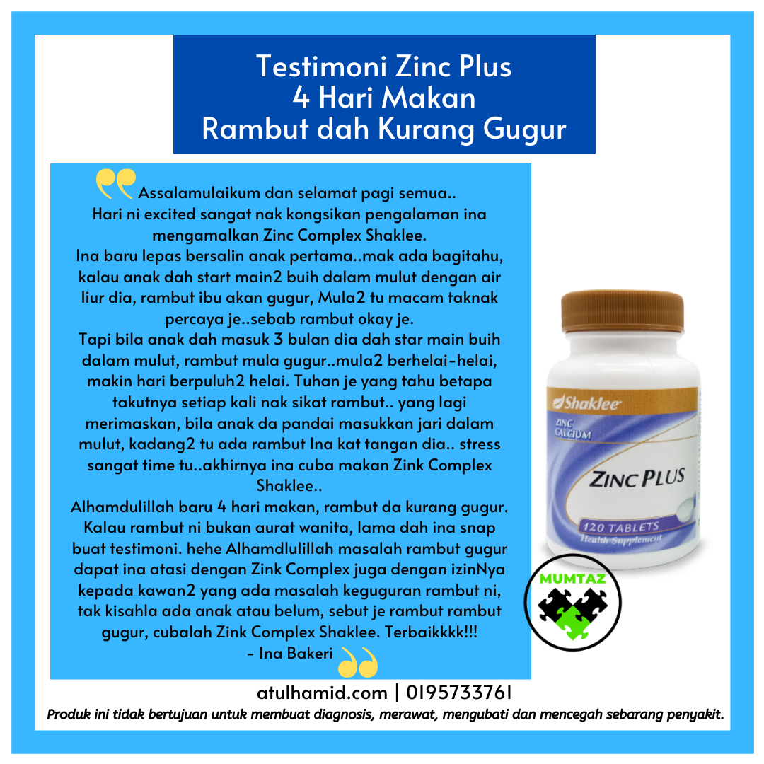 Testimoni Zinc Shaklee Rambut Tidak Gugur Lagi Pengedar