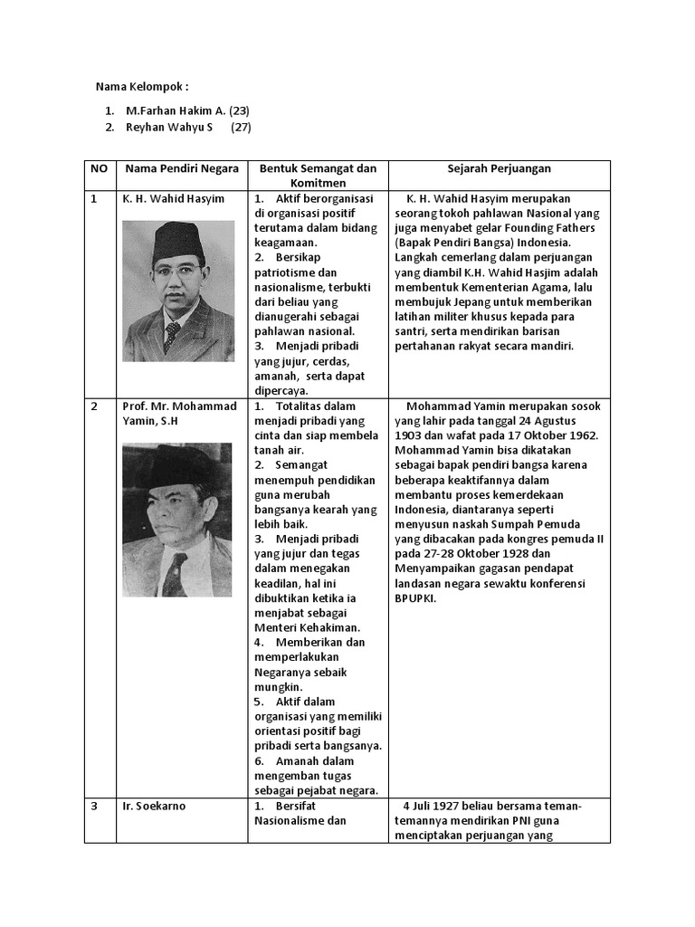 Tuliskan Tokoh Pendiri Negara Beserta Semangat Dan Komitmennya