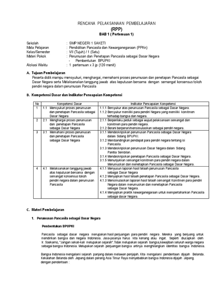Rpp Ppl 2 Kelas 7 Bab 1 Tentang Berkomitmen Terhadap Pancasila Sebaga