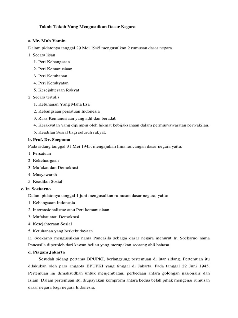 Siapakah Sajakah Tokoh Yang Mengusulkan Rumusan Dasar Negara Dan