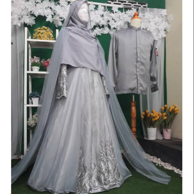 Gaun Pengantin Syari Muslimah Syari Coupple Set Akhwat Wedding